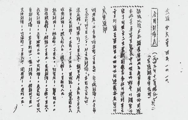 | ¡¶Àϰ£ ¿¹¼úÅë½Å¡· 1945³â 11¿ù 27ÀÏÀÚ´Â ÀÓ½ÃÁ¤ºÎ ÁÖ¼® ÑÑÎúÀÇ ü½ÏÐÀ» ¡´Çع洺½º¡µ°¡ ÃÔ¿µÇßÀ½À» ÀüÇϰí ÀÖ´Ù. |