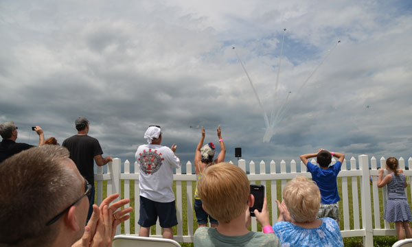 GEÀÇ ¿£Áø(F414-GE-400)À» ÀåÂøÇÑ ¹Ì±ºÀÇ F/A-18 E/F ¼öÆÛÈ£³ÝÀÌ Àå¼ö¸»¹úó·³ À§¿ëÀ» »Ë³Â°í, Å©¸®½ºÅäÆÛ Çϸóµå(Christopher Harmond) Áß·ÉÀÌ À̲ô´Â ¹Ì °ø±º °øÁ߰ÆÀ ¼±´õ¹öµå(Thunder Bird)°¡ GE ¿£Áø(F-110-GE-100/129)À» ÀåÂøÇÑ F-16 C/D ÀüÅõ±â·Î ´ë¹Ì¸¦ Àå½ÄÇß´Ù. Á¸ Ä«½Ã(John R. Kasich) ¿ÀÇÏÀÌ¿À ÁÖÁö»ç´Â ¡°¿ÀÇÏÀÌ¿À´Â Ç×°øÀÇ ¹ß»óÁö(birthplace of aviation)·Î ¶óÀÌÆ® ÇüÁ¦ÀÇ ÀüÅëÀ» Áö¿ª Ãâ½ÅÀÎ Á¸ ±Û·» »ó¿øÀÇ¿ø°ú ´Ò ¾Ï½ºÆ®·ÕÀÌ À̾î¹Þ¾Ò´Ù¡±¸ç ¡°¹Ì °ø±º ¼±´õ¹öµåÀÇ °ø¿¬°ú ¹Ì À°±ºÀÇ °ñµç ³ªÀÌÆ®(Golden Knights)´Â µ¥ÀÌÅÏ ¿¡¾î¼îÀÇ ÀÚ¶û¡±À̶ó°í Çß´Ù.