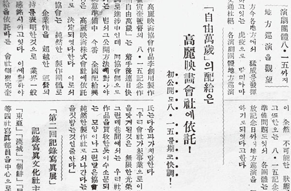 ¡´Á¶¼±¿µÈ»ç ¡´Çع洺½º¡µ Á¦6º¸ Á¦ÀÛ Áß / ±Ø¿µÈ ½ÅÀÛ Áغñ Áß / ¡´¼¿ïŰ³ë¡µ ¡´¹ÎÁ·Àü¼±¡µ Á¦ÀÛ Áß / ±Øµ¿¿µÈ»ç Á¦3º¸ Á¦ÀÛ Áß / Á¶¼±»ê¾Çȸ¡¤Á¶¼±¿µÈ»ç °øµ¿Á¦ÀÛ ¡´Á¦ÁÖµµ dzÅä±â¡µ Á¦ÀÛ Áß / ±ºÁ¤Ã» ´º½º Á¦7º¸ Á¦ÀÛ Áß / °í·Á¿µÈÇùȸ ±Ø¿µÈ ¡´ÀÚÀ¯¸¸¼¼¡µ ±âȹ Áß.¡µ (1946. 4. 4)