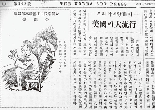 | 1946³â 7¿ù 25ÀÏÀÚ ¡¶¿¹¼úÅë½Å¡·¿¡ ½Ç¸° ¡®¿ì¸® ¾Æ¸®¶û °îÀÌ ¹Ì±¹¿¡ ´ëÀ¯Ç࡯À̶õ ±â»ç. |