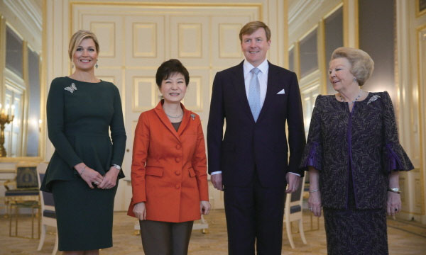 ÀÛ³â 3¿ù 25ÀÏ ³×´ú¶õµå¸¦ ¹æ¹®ÇÑ ¹Ú±ÙÇý ´ëÅë·É. ¿ÞÂʺÎÅÍ ¸·½Ã¸¶ ¿Õºñ, ¹Ú±ÙÇý ´ëÅë·É, ºô·³ ¾Ë·º»ê´õ¸£ ±¹¿Õ, º£¾ÆÆ®¸¯½º Àü ¿©¿Õ. ¸·½Ã¸¶ ¿Õºñ¿Í º£¾ÆÆ®¸¯½º Àü ¿©¿ÕÀÌ Â£Àº »ö Á¤ÀåÂ÷¸²ÀÎ ¹Ý¸é, ¹Ú ´ëÅë·ÉÀº ¹ÙÁö Â÷¸²ÀÌ´Ù.