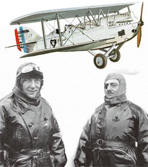| 1927³â ¼¼°è ÃÖÃÊ·Î ´ë¼¾ç ¹«Âø·ú Ⱦ´Ü¿¡ µµÀüÇß´Ù°¡ ÈçÀû ¾øÀÌ »ç¶óÁø ÇÁ¶û½º(ð²) ´Ü¹ß¿£Áø º¹¿±±â ·ç¿ÍÁ¶ ºí¶û(L'Oiseau Blanc¤ýÈò»õ¶ó´Â ÀǹÌ). 1Â÷ ´ëÀü ´ç½Ã ÇÁ¶û½º ¿¡À̽º ÆÄÀÏ·µÀ̾ú´ø »þ¸¦ ³¶ÁÖ¼¼(Charles Nungesser¤ý¿ÞÂÊ)¿Í ÇÁ¶û¼ö¾Æ Äݸ®(Francois Coli)°¡ ¡®Èò»õ¡¯ Á¶Á¾°£À» Àâ¾Ò´Ù. |