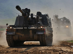 - 2009³â 6¿ù 18ÀÏ, À°±º 6Æ÷º´¿©´Ü 878Æ÷º´´ë´ë°¡ °æ±âµµ ¿¬Ãµ±º¿¡¼ Áö»óȷ´ëºñż¼ ÈÆ·ÃÀÇ ÀÏȯÀ¸·Î K-9ÀÚÁÖÆ÷ »ç°Ý ÈÆ·ÃÀ» ½Ç½ÃÇß´Ù. »çÁøÀº »ç°Ý¿¡ ¾Õ¼ ÀÚÁÖÆ÷°¡ ±âµ¿ÇÏ´Â ¸ð½À. K-9ÀÚÁÖÆ÷´Â ÅÍŰ µî¿¡ ¼öÃâÇÑ ¼¼°è Á¤»ó±ÞÀÇ ±¹»ê ¹«±â´Ù.