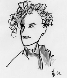 | 안정효씨가 그린 캐서린 헵번의 캐리커처. 파마 머리와 얇은 입술이 자유분방한 인상을 준다. |