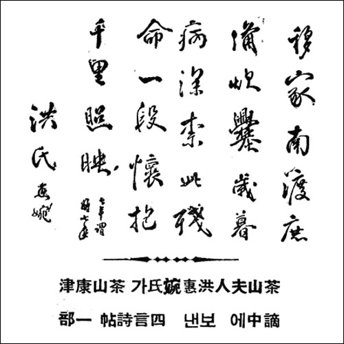 ½Ã¸¦ ÅëÇØ º¼ ¶§, È«ºÎÀÎÀº 1806³â 12¿ù¿¡ ÀÌ ½Ã¸¦ Áö¾î ³²Æí ´Ù»êÀÇ °Áø À¯¹èÁö·Î º¸³Â´Ù. ¾öµ¿¼³ÇÑ(åñÔÏàäùÎ)À» ¸Â¾Æ º´À» ¾ÎÀ¸¸ç ±Ù½É¿¡ Àá°Ü ÀÖ´ø ±×³à´Â ¾î´Àµ¡ 7³â°·Î Á¢¾îµå´Â ³²ÆíÀÇ ±â¾à ¾ø´Â À¯¹è »ýȰ¿¡ ÁöÃÄ °¡´Â ÀÚ½ÅÀÇ ½Éȸ¸¦ ¼ÖÁ÷ÇÏ°Ô ¹¦»çÇß´Ù. ÀáÀº ¾È ¿À°í, µÈ¼¸®°¡ ¿©¸° Ç® À§¿¡ ³»¸° µí °ßµð±â Èûµç ½É»ç¸¦ Ç¥ÇöÇß´Ù.