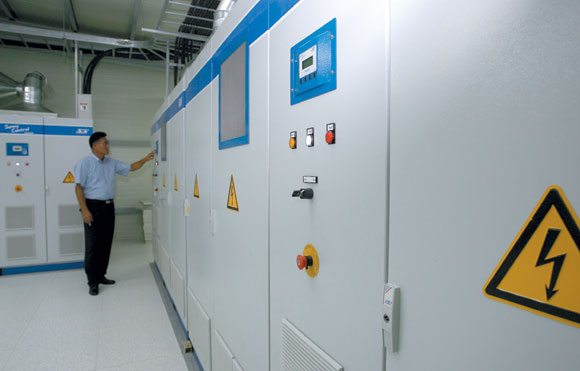 | LG ÅÂ¾È Å¾籤 ¹ßÀü¼Ò¿¡¼ »ý»êµÈ Á÷·ù Àü±â¸¦ ±³·ù·Î ¹Ù²ã ¼ÛÃâÇÏ´Â ÀιöÅÍ ½Ã¼³. |