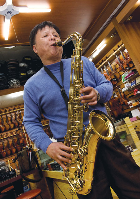 | ³«¿ø¾Ç±â»ó°¡ÀÇ ÇÑ °¡°Ô¿¡¼ »ö¼ÒÆùÀÇ Ù£Ðï(¸í±â) ÇÁ¶û½ºÁ¦ ¡®¼¿¸Ó¡¯¸¦ ¿¬ÁÖÇÏ´Â Áß³âÀÇ ¼Õ´Ô. |