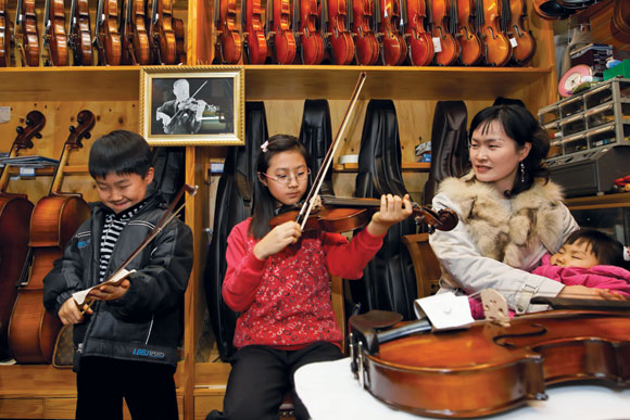 | º¹µµ¿¡ Áø¿µÈ ±×·£µå ÇǾƳ븦 ¿¬ÁÖÇÏ´Â ¾î¸°ÀÌ. µÚÆí¿¡ Èå¹µÇØ ÇÏ´Â ºÎ¸ðÀÇ ¸ð½ÀÀÌ º¸ÀδÙ. |
