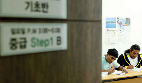 | ÇØ°íµÈ ±Ù·ÎÀÚµéÀÌ ½°ÅÍ¿¡ ¸Ó¹«´Â µ¿¾È Çѱ¹¾î ±³À°À» ¹Þ°í ÀÖ´Ù. |