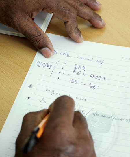 | ±Ù·ÎÀÚÁö¿ø¼¾ÅÍ¿¡¼ Çѱ¹¾î ±³À°À» ¹Þ°í ÀÖ´Â ½º¸®¶ûÄ« ±Ù·ÎÀÚ ½Ç¹Ù(26) ¾¾ÀÇ ¼Õ. |