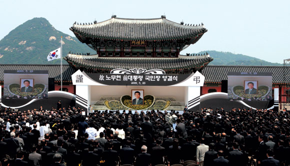 Áö³ 5¿ù 23ÀÏ »õº® ºÀÇϸ¶À» µÞ»ê¿¡¼ Åõ½ÅÇÑ Íº(°í) ÒÆÙëúè(³ë¹«Çö) îñ(Àü) ´ëÅë·ÉÀÇ ¿µ°á½ÄÀÌ 5¿ù 29ÀÏ ¼¿ï °æº¹±Ã ¾Õ¶ã¿¡¼ ±¹¹ÎÀåÀ¸·Î ¾ö¼öµÆ´Ù. ¿µ°á½Ä¿¡´Â ±Ç¾ç¼÷ ¿©»ç, ³ë°ÇÈ£¡¤Á¤¿¬¾¾¸¦ ºñ·ÔÇÑ À¯Á·°ú À̸í¹Ú ´ëÅë·É ³»¿Ü, ±è¿µ»ï¡¤±è´ëÁß Àü ´ëÅë·É, Çѽ¼ö ±¹¹«ÃѸ® µî Á¤¡¤°ü°è ÁÖ¿ä Àλç, ÁÖÇÑ ¿Ü±³»çÀý µî 2500¿© ¸íÀÌ Âü¼®Çß´Ù. ¢Á