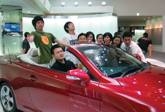 | ³ª°í¾ß(٣ͯè©)¿¡ À§Ä¡ÇÑ µµ¿äŸ ÀÚµ¿Â÷ °øÀåÀ» °ßÇÐÇÑ µÚ µµ¿äŸ ÀÚµ¿Â÷ ȸ°üÀ» ¹æ¹®ÇÑ Ã¼Çè´Ü ÇлýµéÀÌ ½ºÆ÷Ã÷Ä«¿¡ ž½ÂÇØ º¸°í ÀÖ´Ù. |