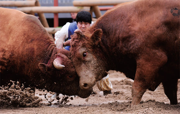 µÕ±×·± ¸ð·¡ÆÇ¿¡ °üÁßÀÌ ¸ð¿©µé°í ¼Ò½Î¿òÀÌ ÇÑÆÇ ¹ú¾îÁ³´Ù. ¾üÀú³á ³»¸° ºñ·Î °æ±âÀåÀº ¿ÂÅë ÁøÈëÀÌ´Ù. ¼Ò½Î¿òÀº ÈÆ·Ã½ÃŲ µÎ ¼Ò¸¦ ¸¶ÁÖ ¼¼¿ö ½Î¿ì°Ô ÇÏ´Â ³îÀÌ´Ù. °æ±â½Ã°£Àº µû·Î Á¤ÇØÁ® ÀÖÁö ¾Ê´Ù. µÑ Áß ÇÑ ¸¶¸®°¡ µîÀ» µ¹¸± ¶§±îÁö ½Î¿òÀº °è¼ÓµÈ´Ù.