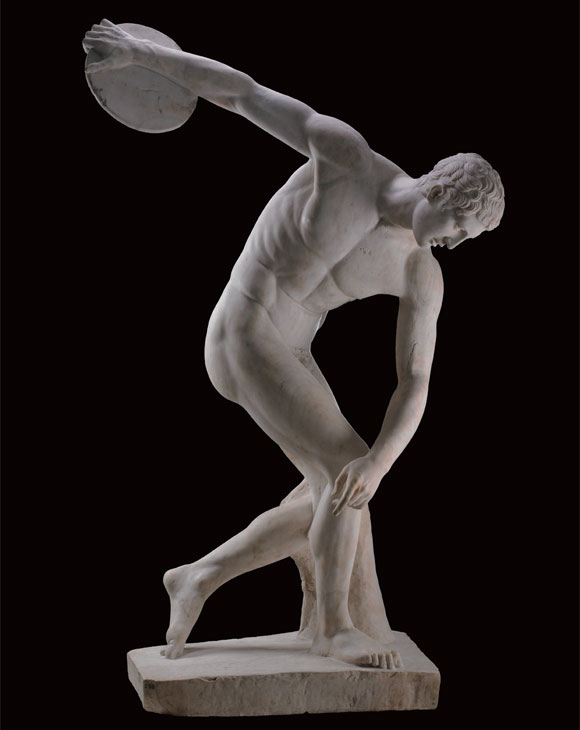 - ¡®¿ø¹Ý ´øÁö´Â »ç¶÷¡¯. ±×¸®½ºÀÇ Á¶°¢°¡ ¹Ì·Ð(Myron)ÀÌ ±â¿øÀü 5¼¼±â Áß¿±¿¡ ¸¸µç ûµ¿»óÀ» ¼±â 2¼¼±â¿¡ ´ë¸®¼®À¸·Î º¹Á¦Çß´Ù. 1948³â ·±´ø¿Ã¸²ÇÈ °ø½Ä Æ÷½ºÅÍ¿¡ À̹ÌÁö·Î Ȱ¿ëµÇ±âµµ Çß´Ù.