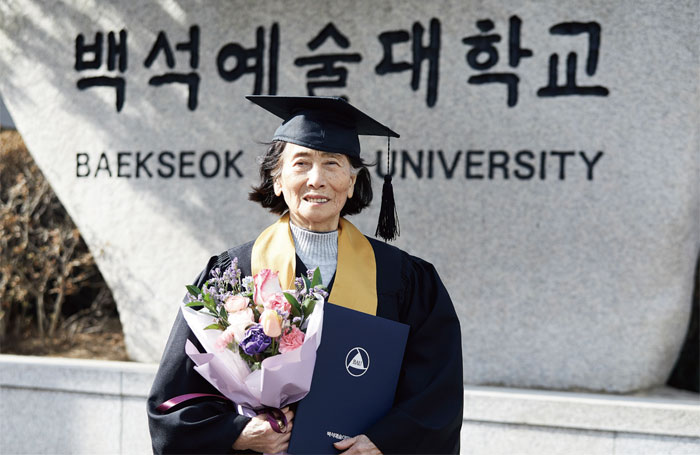 올해 2월, 1937년생 손금년(孫金年·90)씨가 백석예술대 전기 학위수여식에서 보건복지학부 실버케어비즈니스학과 전문학사를 취득했다. 가난으로 배움의 기회를 얻지 못했던 시골 소녀가 아흔 나이에 꿈을 이룬 순간이다. 손씨는 경북 상주에서 20km를 들어가는 공성면 농가에서 4남매 중 둘째로 태어났다. 어린 시절부터 일손을 보태야 했던 그녀에게 또래들이 교복을 입고 학교에 가는 모습은 서러움 그 자체였다. 치기공사였던 남편과 결혼한 뒤 1973년 서울로 올라온 손씨는 남편 일이 자리를 잡으면서 형편이 나아졌다. 1남 5녀를 남부럽지 않게 키웠지만, 글을 몰라 겪는 불편함과 부끄러움은 마음속에 강하게 남았다.