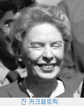 조지타운大 교수 출신인 그녀는 정연한 이론적 논리로 유엔에서 미국의 입장을 설득, 관철시키며 레이건 外交의 戰士(전사) 역할을 맡았다. 특히, 제3세계에서 左派와 反정부 세력을 탄압하는 권위주의 정권을 지원하는 미국의 정책에 대한 비난 여론에 대해 그녀는 『민주주의는 점진적으로 확립돼 갈 수 밖에 없으며, 공산주의식 전체주의와 민주주의로 가는 과정에 있는 권위주의는 구별돼야 한다』는 논리로 레이건式 냉전 정책을 합리화시켜 나갔다.