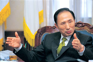 ―정치적인 질문을 안 드릴 수가 없는데요. 盧武鉉 정부를 불안하게 보는 사람들이 많습니다. 정치인 李明博으로서 盧武鉉 정부 100일을 평가해 주시죠.