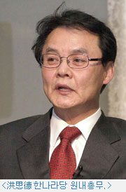 洪思德 총무는 보수정당의 연대를 기반으로 한 내각제 개헌 가능성에 대해 『지금은 아니다』고 말했다.