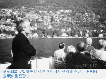 다음날인 9월20일, 月刊朝鮮 여행단은 호텔 바로 앞에 있는 선착장에서 여객선을 타고 코모호수 북쪽으로 약 1시간30분 떨어진 곳에 있는 「벨라지오」라는 마을을 방문했습니다.
