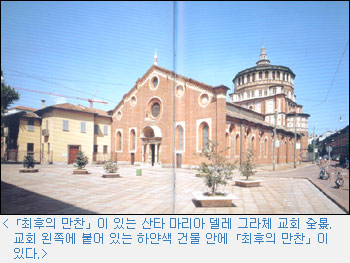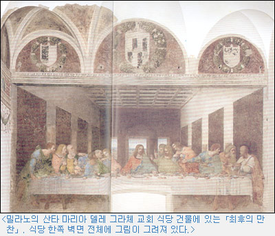 관람객들이 벽화에 너무 가까이 다가서는 것을 막기 위해 그림이 그려진 교회 식당의 벽면 약 3m 전방에는 허리 높이의 칸막이를 쳐 놓았습니다. 「최후의 만찬」 앞에 선 일행 중 한 명이 중얼거리듯 말했습니다.