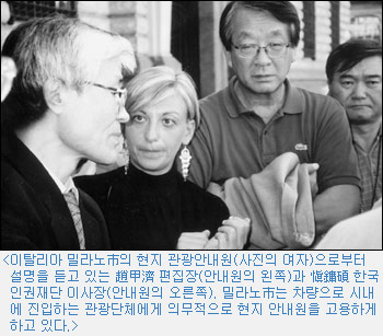 이탈리아, 스위스, 독일, 체코를 급하게 버스로 돌아다닌 저희 月刊朝鮮 역사·문화기행의 한 특징은 「車中대화」입니다. 유럽 여행은 버스 여행인 경우가 많습니다. 이번에도 버스에서 40명의 여행객들이 빠짐없이 대화에 참여했습니다. 신변잡담에서부터 외국 여행의 경험, 자신의 직무와 관련된 이야기, 나라 걱정 등 화제가 다양합니다. 여기 참여하신 분들이 거의 50代 이상이기 때문에 하고 싶은 얘깃거리가 많습니다. 이런 이야기 속에서 무서운 名言들이 튀어나오기도 합니다.