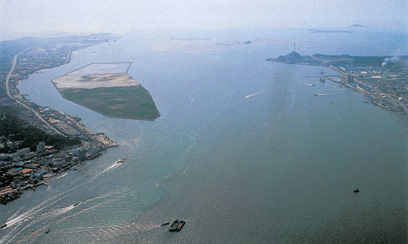 - 금강하구. 이곳이 663년 羅唐연합군과 백제 부흥군·왜국 원정군 연합이 白村江 전투를 벌였던 현장이다. 현재, 왼쪽이 전북 군산이고 오른쪽이 충남 장항.