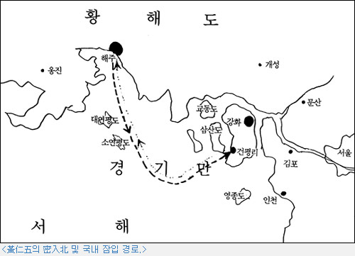 -10월23일 21:30경 2명의 무장 안내원 호송하에 半잠수정에 승선, 입북시의 逆경로로 同日 23:00경 강화도 양도면 건평리 해안에 도착