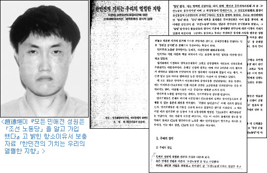 『모든 민애전 성원은 이른바 한민전이 곧「조선 노동당」이라는 언급을 듣고 입당했다. 이는 명백한 진실이다』(민애전 조직원 趙德垣의 항소이유서)
