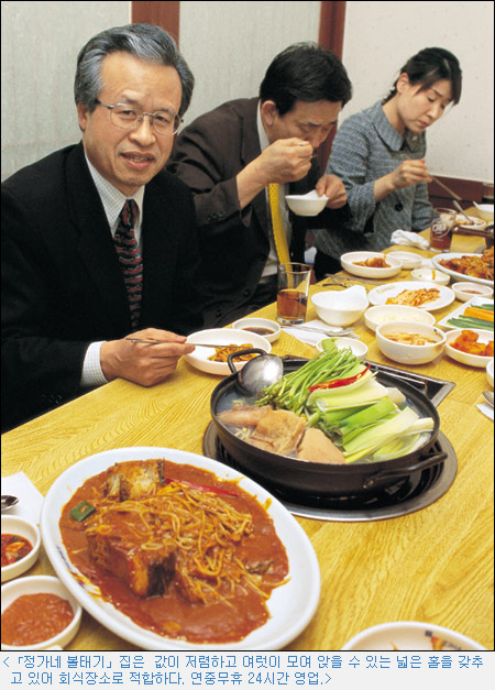 미래한국 신문 회장 金尙哲(김상철·58·변호사)씨는 직원들과 회식이 있는 날에는 서울 역삼동의 특허청 서울사무소 뒤편에 있는 「정가네 볼태기」(02-555-7717) 역삼점을 자주 찾는다. 이 집은 대구머리찜과 대구머리탕을 주 메뉴로 내놓는다.