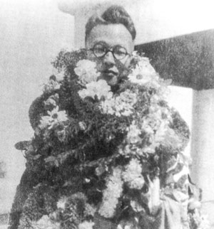 | 하와이 원정야구단과 함께 하와이로 왔던 尹致暎. 1925년에 李承晩 등의 환송을 받으며 미국 본토로 떠날 때의 모습〔尹致暎, 「尹致暎의 20世紀」(1991)에서〕. |