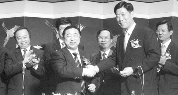 - Á¶ÈïÀºÇà ÃÖµ¿¼ö ÇàÀå(¿À¸¥ÂÊ)ÀÌ 2004³â 7¿ù27ÀÏ »óÇÏÀÌÀÚµ¿Â÷(SAIC) Èĸ¶¿ÀÀ§¿£ ÃÑÀç(¿ÞÂÊ)¿Í MOU¸¦ ü°áÇß´Ù.