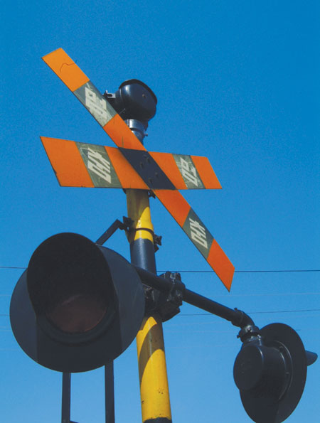| 기차 건널목에서 만날 수 있는 신호등. |