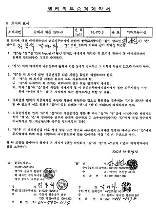 | Çѱ¹ÅäÁö°ø»ç¿Í ÃÖÃÊ ¾àÁ¤±ÇÀÚÀÎ ÑѾ¾, ±×¸®°í ¾àÁ¤±ÇÀ» ³Ñ°Ü ¹ÞÀº ÚÓæÐó ȸÀå °£ ü°áÇÑ¡¸±Ç¸®Àǹ«½Â°è °è¾à¼¡¹. |