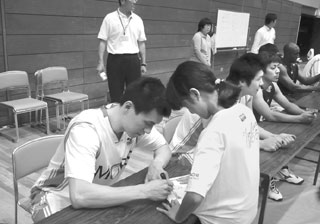 선수들은 하나 같이 비 맞은 생쥐처럼 땀에 흠뻑 젖었다. 감독이 「그만」이라는 사인을 보내자 선수들은 가볍게 몸을 풀고 짐을 쌌다.