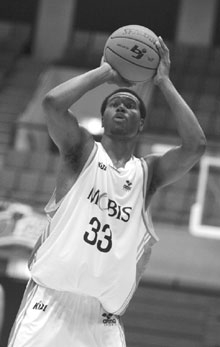 | 지난 9월21일 연습경기에서 용병「키나 영」이 슛을 쏘고 있다. |