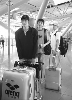 | 지난 9월24일 일본 간사이 공항에서 함지훈, 신종석, 김효범이 티케팅을 하기 위해 기다리고 있다. |