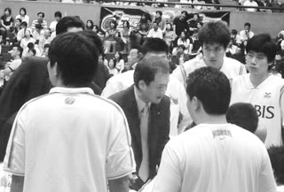 | 지난 9월23일 유재학 감독이 韓日 챔피언戰에서 모비스 선수들에게 작전을 지시하고 있다. |