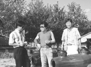 | 안성 도자공방에서 대학동창인 조영남씨·김영동씨와 함께. |