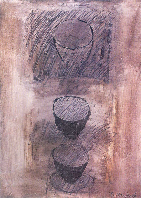 | THE BOWLS, Mixed on paper, 30×22〃, 1981 Kumho Museum of Art Collection. |