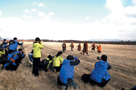 ±×µéÀº »ç½¿ °¡Á×À¸·Î ¸¸µç ¿ÊÀ» ÀÔ°í ¿©·¯ °¡Áö ÃãÀ» Ãß¾ú´Ù. °¥¸Å±âÀÇ ³¯°¹Áþ°ú ¿ì´Â ¼Ò¸®¸¦ ¿µ¶ô¾øÀÌ Èä³» ³»¸ç Ãß´Â °¥¸Å±âÃã, »ç½¿ °¡Á×À¸·Î ¿ÊÀ» ¸¸µå´Â ½Ã´¿À» ÇÏ´Â ±æ½ÓÃã, ÃѾËÀ» Àؾî¹ö¸®°í »ç³ÉÅÍ¿¡ °£ »ç³É²ÛÀÌ ´çȲÇÏ´Â ¸ð½ÀÀ» ±×¸° »ç³ÉÃ㡦. ¹«¿ë¼öµéÀº ¼Ò¸®¿Í ¸ð½ÀÀ» Àͻ콺·´°Ô Èä³» ³»¸ç ÃãÀ» Ãß¾ú°í, ´Ù¸¥ »ç¶÷µéÀº ³ë·¡¸¦ ºÎ¸£°Å³ª °£´ÜÇÑ ¾Ç±â·Î ¹ÚÀÚ¸¦ ¸ÂÃç ÁÖ¾ú´Ù.