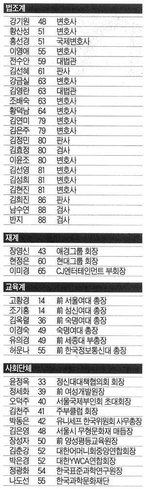 특히 경기여고는 이 땅의 수많은 政界(정계)ㆍ財界(재계)ㆍ學界(학계)의 안주인들을 배출했다. 경기여고의 인맥도는 오늘날 대한민국 권력지도와 거의 비슷하다.
