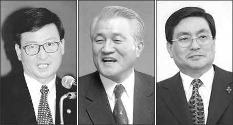 | 김영삼 정권 시절 정권의 군기반장 역할을 했던 姜三載 신한국당 사무총장, 崔炯佑 내무부 장관, 李源宗 정무수석비서관.(왼쪽부터) |