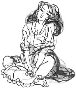 장수는 그녀의 차림새를 살폈다. 전과 다름없는 오동통한 몸매에 화사하게 화장을 한 하얀 얼굴이었다. 노란 물을 들인 긴 머리칼들을 색정적으로 보이도록 늘어뜨리고, 목 깊이 팬 블라우스에 짧은 치마를 입고 주황색 앞치마를 두르고 있었다. 목에는 샛노란 굵은 금목걸이를 하고, 반짝거리는 귀걸이를 하고, 손목에 팔찌를 하고, 손가락에 보석 반지를 끼고….