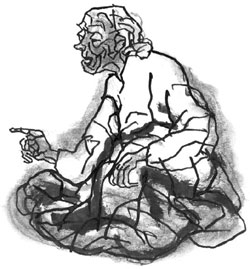노모가 내 등에 새로 얹어 주려 하는 짐 때문에 짜증이 났지만, 늘 그래 오듯 천연덕스럽게 허공을 쳐다보았다.