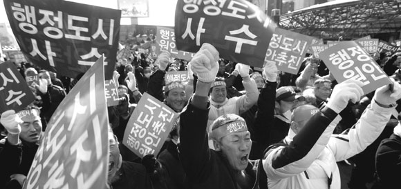 | 이명박 대통령은 임기 3년차 정치실험으로 세종시 백지화를 선택했다. 사진은 세종시 백지화에 반대하는 충남도민 시위. |