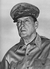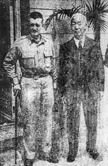 | 귀국하는 李承晩과 會談할 무렵의 맥아더 장군. 그는 1945년 9월 2일에 元帥로 승진했다. |