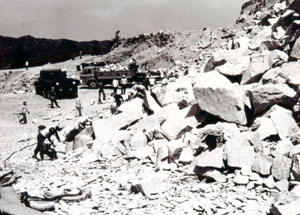 | 댐에 축조할 암석을 소양강 근처 야산에서 채취하고 있는 모습.(사진 제공=현대건설) |