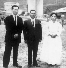 | 박정희 대통령과 함께한 정주영 현대건설 사장 부부. |