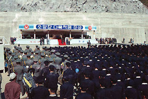 | 1973년 10월 15일 소양강댐 준공식 장면.(사진 제공=한국수자원공사) |