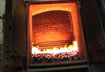 | 건조실은 이탄(Peat)을 태워 발생하는 열기와 연기로 가득하다. 건조되는 동안 맥아에는 이탄 향이 스며든다. |